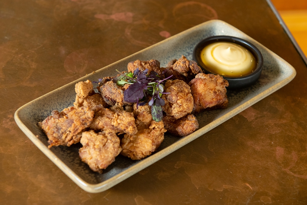 crispy karaage chicken, chips & salad